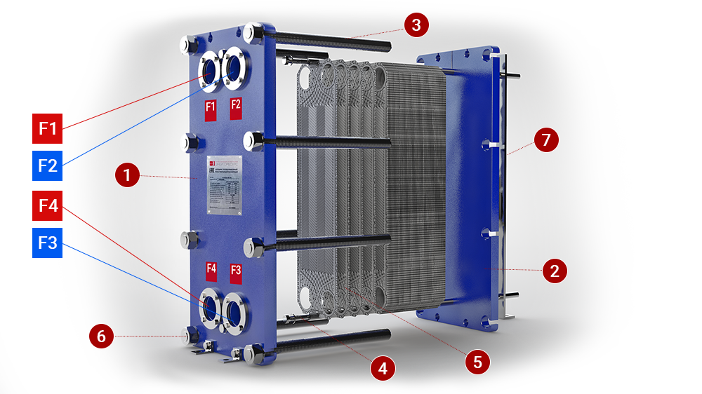 Конструкция внутренних каналов обеспечивает эффективное турбулентное движение сред внутри теплообменника. Благодаря этому внутренние полости самоочищаются под действием турбулентного потока теплоносителя и нагреваемой среды